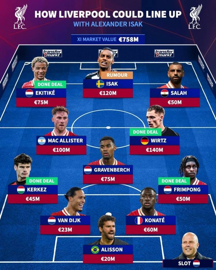英超大结局?德转预测签伊萨克后的红军主力阵:索博&加克波替补