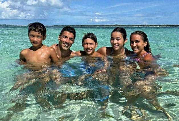 苏亚雷斯一家生活幸福,38岁依旧是足坛巨星,与高颜值妻儿度假